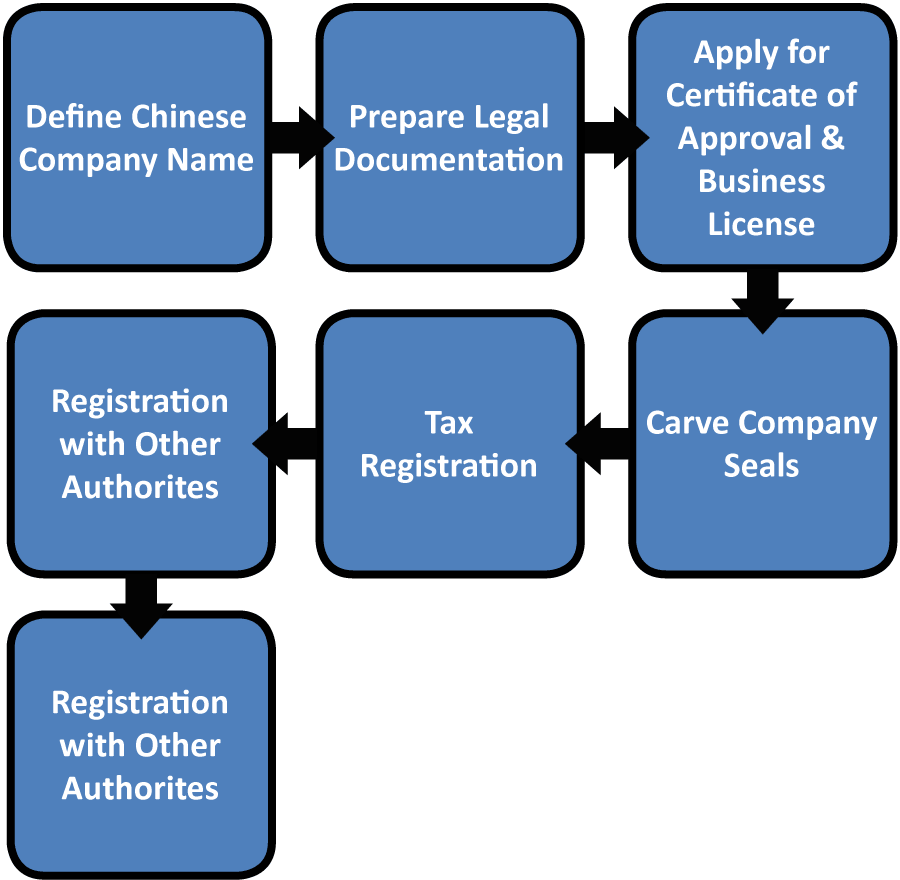 The following flow chart illustrates the procedure for setting up a WFOE in China: